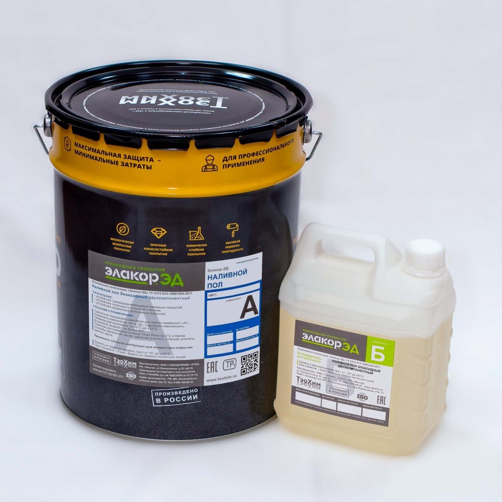 Элакор-ЭД Наливной пол Промышленный - эпоксидный самовыравнивающийся двухкомпонентный состав для устройства наливных и кварцнаполненных покрытий полов в помещениях со средними и высокими нагрузками и фактурных окрасочных покрытий..